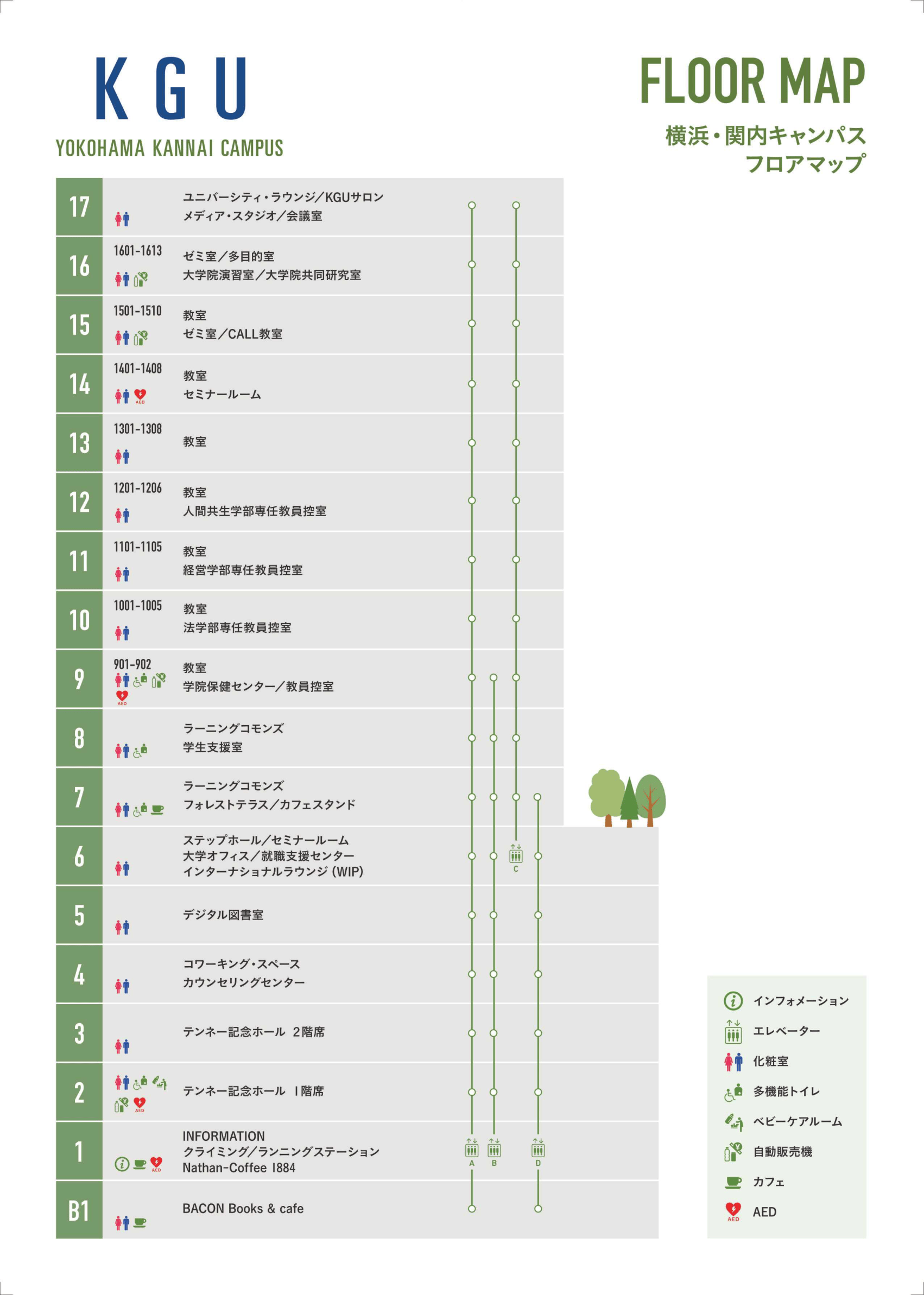 | 17F | ユニバーシティ・ラウンジ/KGUサロン メディア・スタジオ/会議室 |