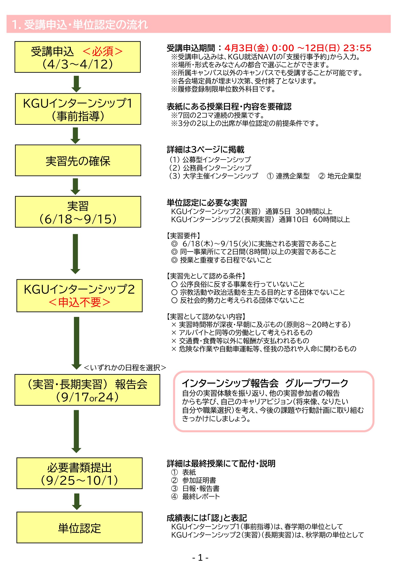 ・「KGUインターンシップ1」受講生で大学主催インターンシップのみに参加する場合は申請不要です。