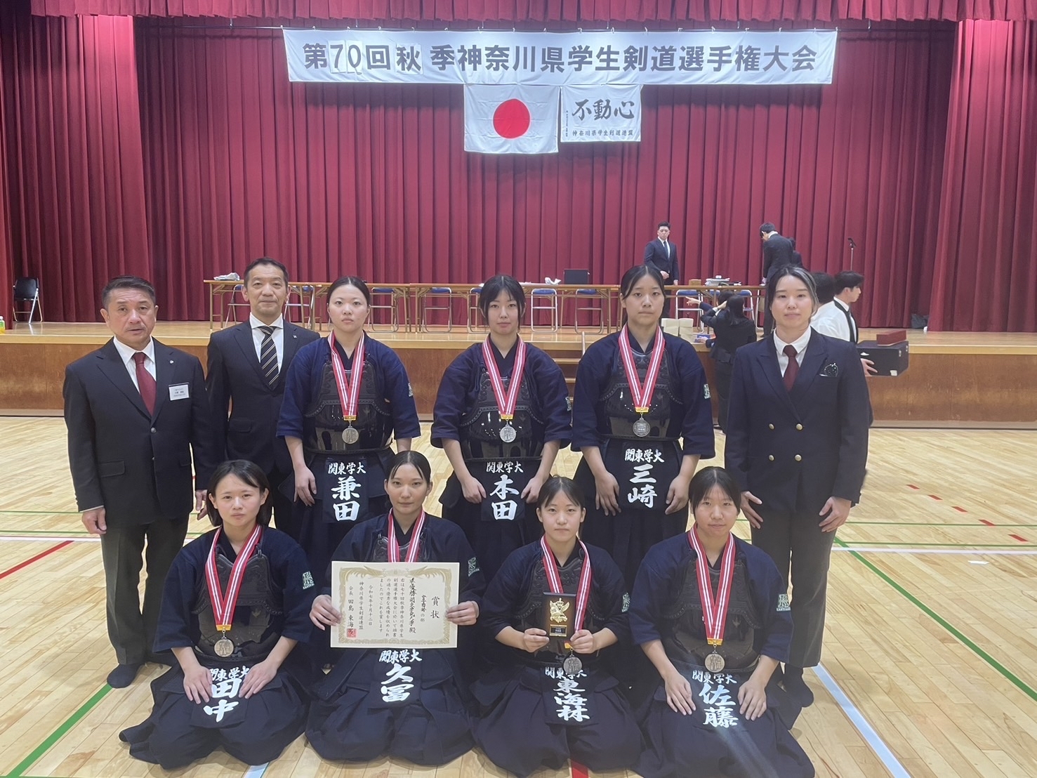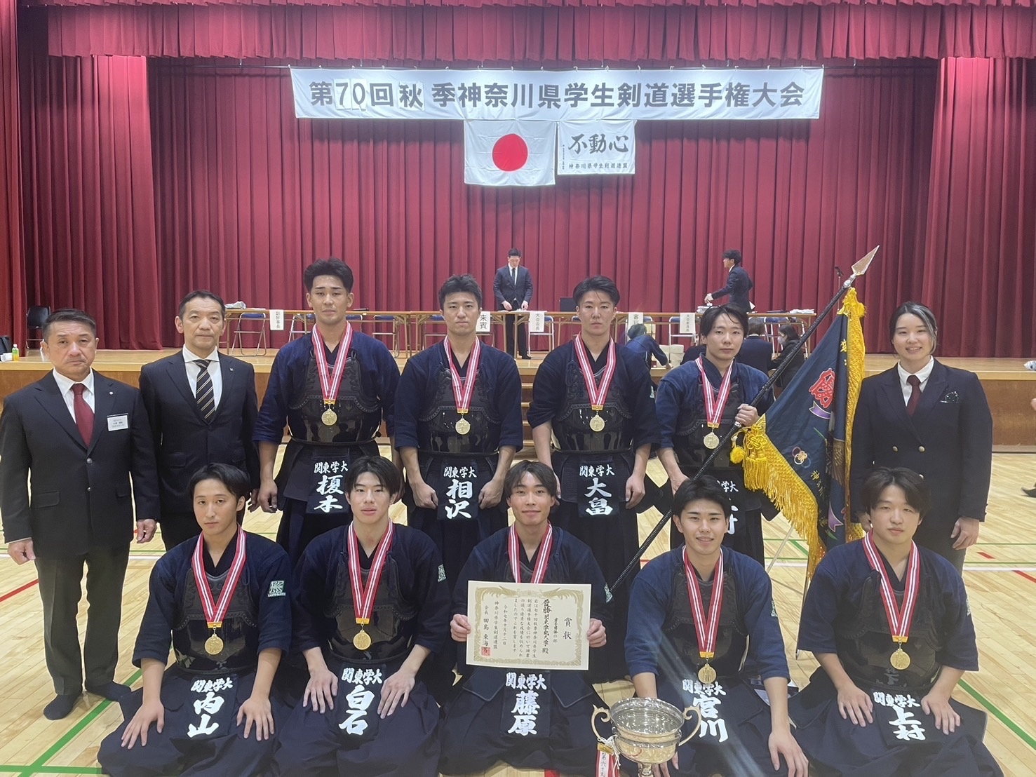 剣道部が、10月12日(日)に鶴見大学で開催された第70回秋季神奈川県学生剣道選手権大会に出場し、男子団体戦で優勝、女子団体戦で準優勝しました。また、女子個人戦で田中 愛寿可さん(国際文化学部2年)が3位入賞、男子個人戦で葛西 優人さん(理工学部3年)がベスト8に入賞しました。