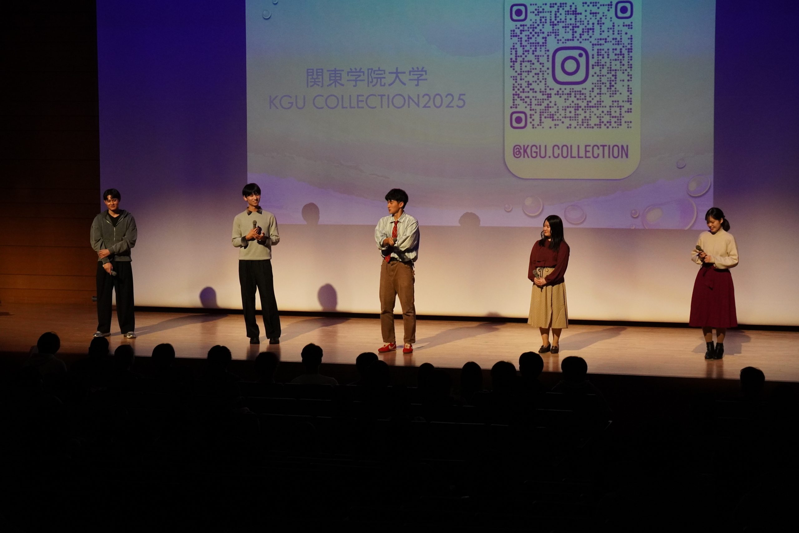 オープンチャーチ前に設けられた屋外ステージでは、でんでんむ詩部やフォークソング部などがパフォーマンスを行い、訪れた来場者を盛り上げました。また、両日にわたって開催されたKGU Collectionでは、6名の候補者の中から今年は鎌田帆楓さん(理工学部1年)がグランプリに輝きました。