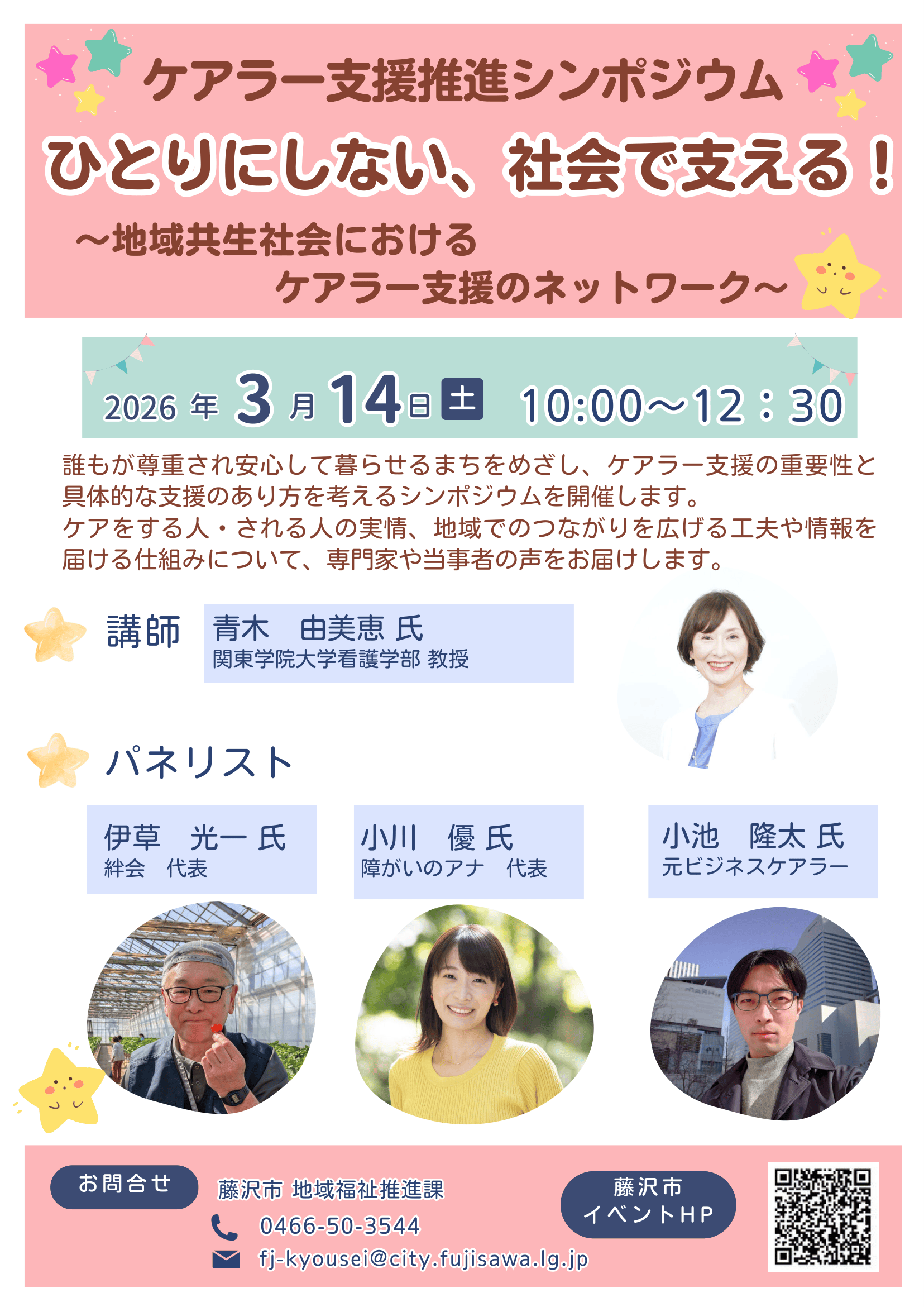 3/20のタウンニュースで看護学部の青木由美恵教授が講師として参加した、藤沢市議会主催「ケアラー支援推進シンポジウム」について紹介されています。