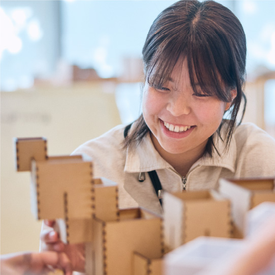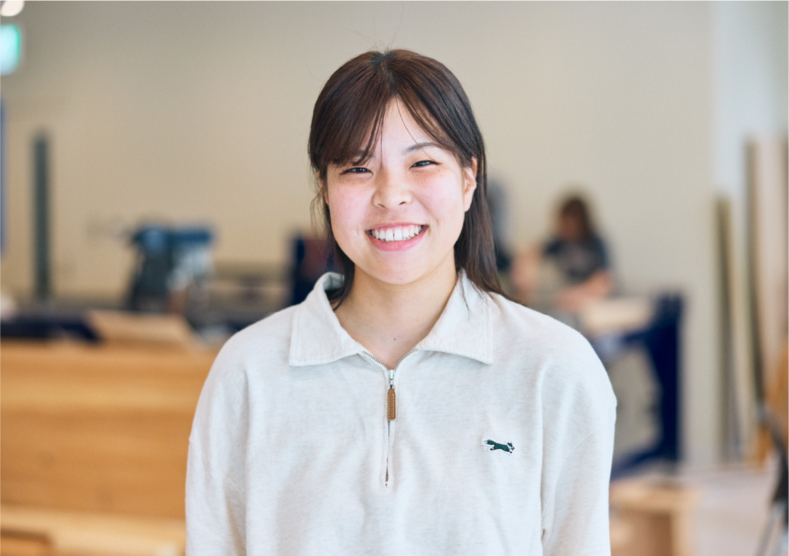 「実際に手を動かして、形にしていくことができる」そんな期待を胸に、粕谷研究室に入りました。昨年、先輩たちが制作していた様子を見ていたので、「次は自分たちの番だ」と、このプロジェクトを心待ちにしていました。自分の考えた“立体的な畑”の案が採用されたときは、本当に嬉しかったです。特に難しかったのは、デザイン性と機能性の両立。シンプルでありながら「デザイン性がある」と評価してもらえたことも励みになりましたし、分解して持ち運びができることや、拡張性の高さなど、細部までアイデアを詰め込みました。横須賀美術館での展示当日には、お客さんから「これはどういうコンセプトなの?」と声をかけていただき、実際に自分の考えたKOYARTから野菜を手に取って購入してもらえた際には、とても嬉しくなりました。自分の思い描いたものが形になり、人に見てもらえる。そして、それが地域の未来へとつながっていく。建築の魅力をあらためて実感し、その面白さを強く感じた時間でした。