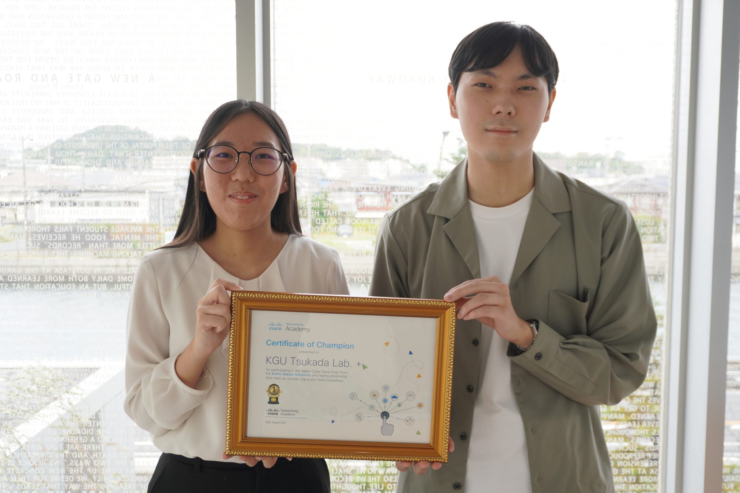理工学部情報ネット・メディアコース(2026年度より情報学部開設)の有志学生2名で編成されたチーム「KGU Tsukada Lab+」が、8月5日(火)に開催されたサイバーセキュリティ競技大会「Japan Cyber Race Final 2025」に初出場し、優勝しました。