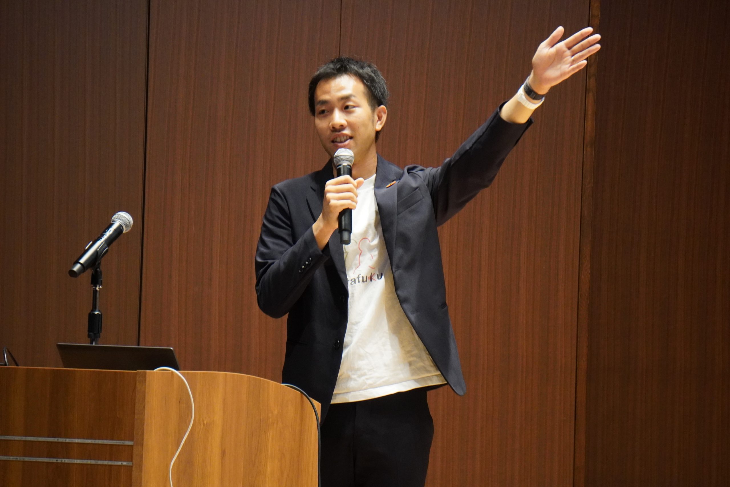 その後、松坂氏からは代表を務める株式会社kitafukuの商品で、クラフトビールペーパーと呼ばれクラフトビールを製造する際に生じるモルト粕を再利用して製作した紙による事業の紹介がありました。コロナ禍、飲食店などではどれだけの廃棄物が発生するのかという点に疑問を抱き、1カ所のブルワリーで1tもの廃棄がでることに課題を感じた松坂氏。その課題を解決するため、何かできることはないかと考え始めたことがきっかけで発展したスタートアップ事業です。この事業が成功した理由の一つを、幼少期より環境問題に触れ、持続可能な社会に貢献できることはないかと常に考えていた結果だとし、今後も他の素材での開発を模索していると話しました。