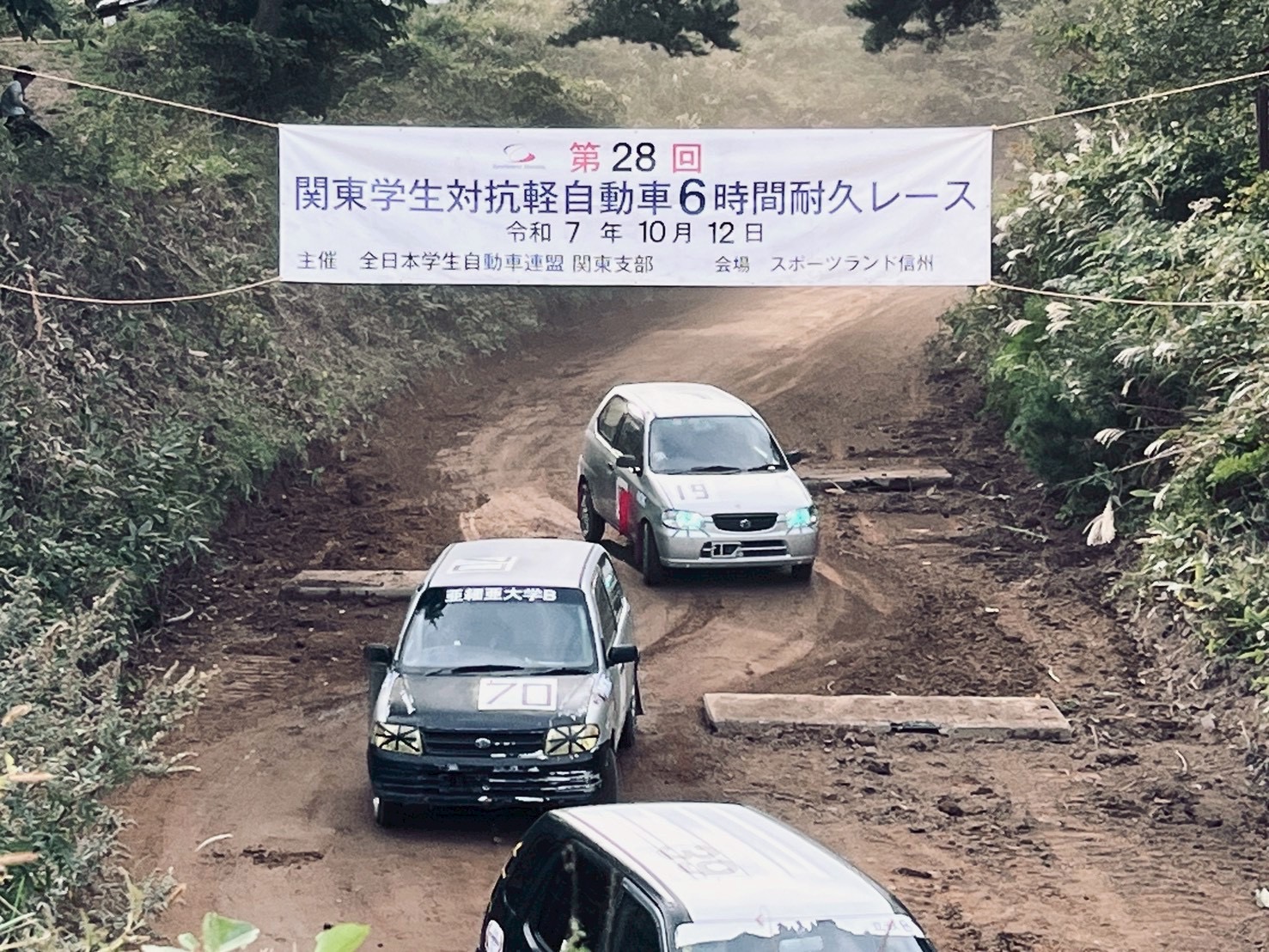 自動車部の学生が、第28回関東学生対抗軽自動車6時間耐久レースにて134周で3位入賞を果たしました。同大会は10月11日(土)~12日(日)にスポーツランド信州にて開催され、全日本学生自動車連盟関東支部に加盟する関東圏の大学13校と、一般学生チームも含めて全20台がレースへ出場しました。