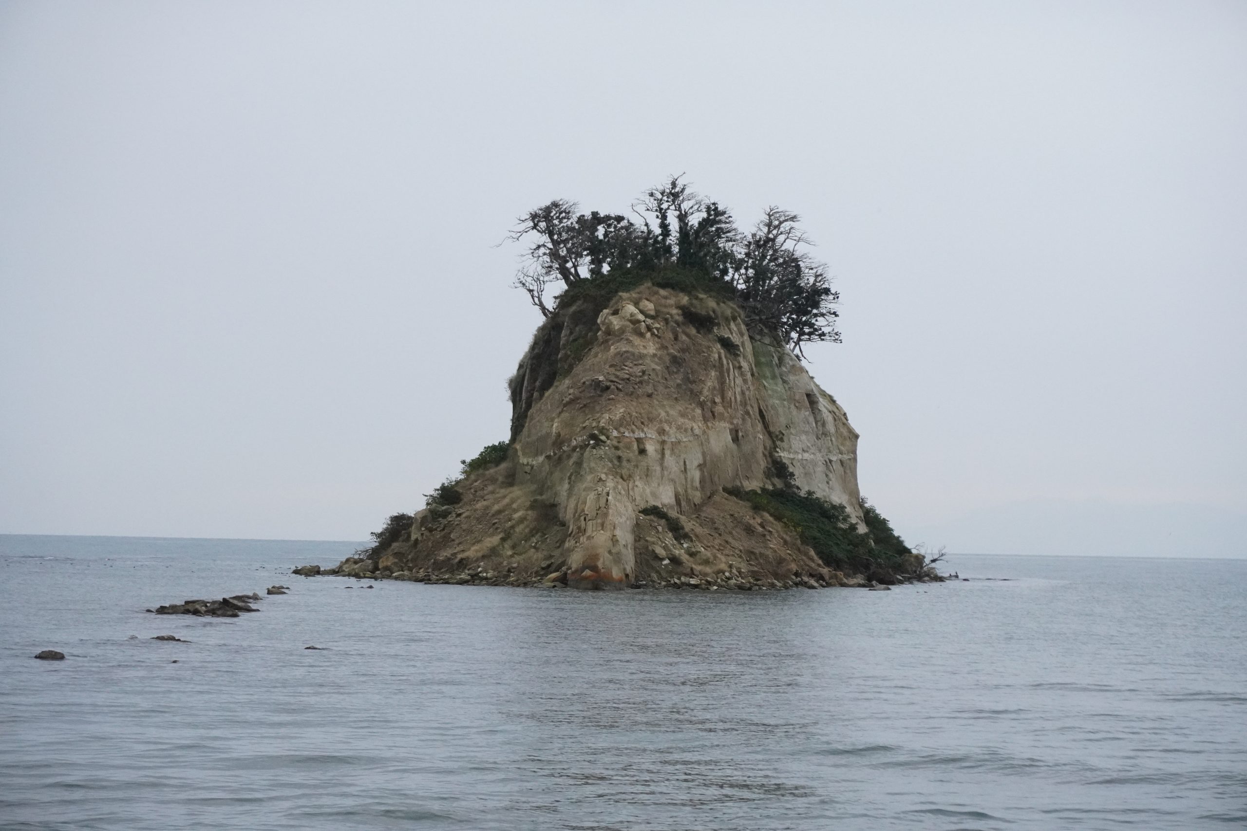 島の一部が崩落し島頂部にあった草木も枯れ白骨化が進行している