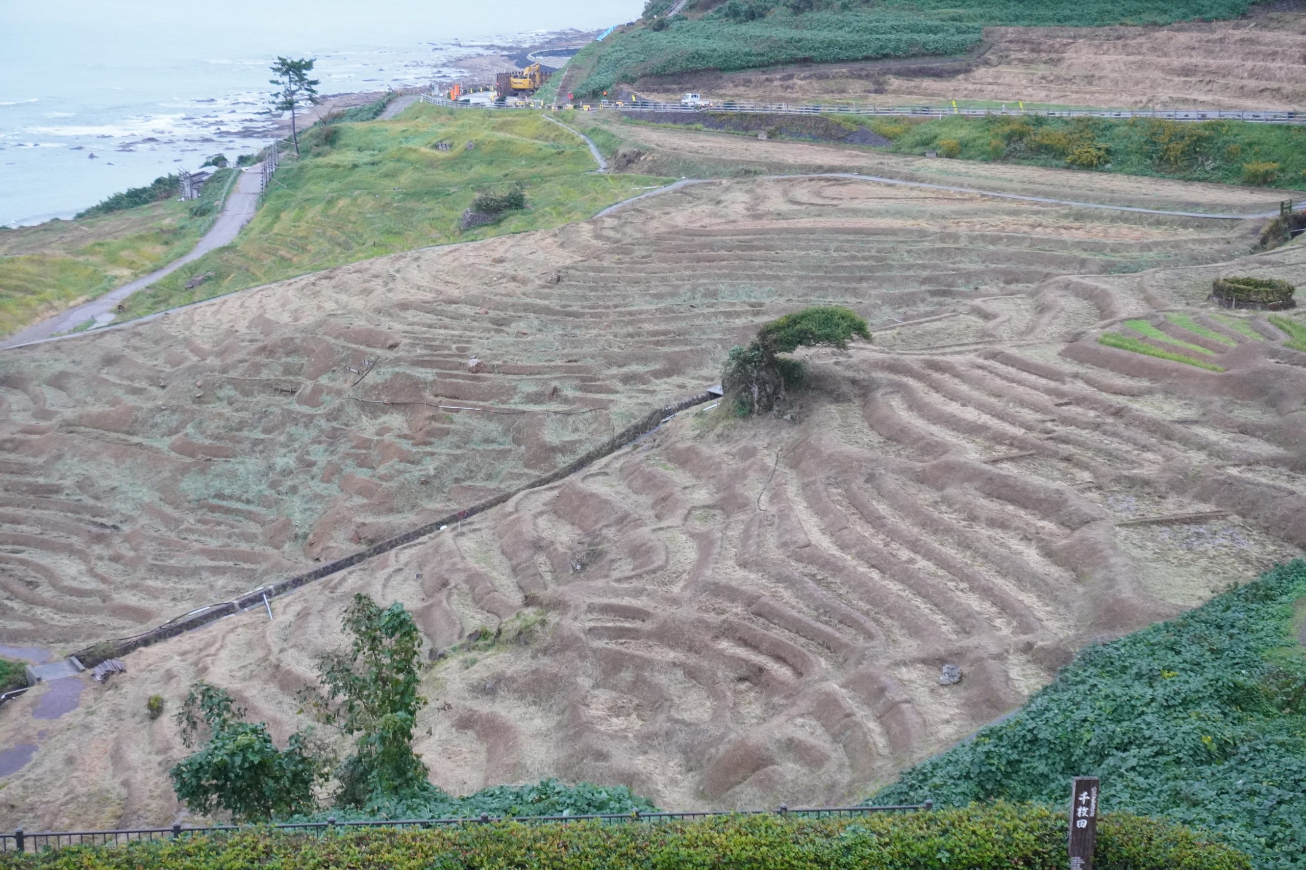その後訪れた珠洲市の見附島は、島の形を軍艦に見立て軍艦島の別名でも呼ばれ能登地方のシンボルとして多くの観光客が訪れていましたが、地震によって島は崩れ落ち、対岸の長い砂浜は地盤沈下により消滅。津波による被害に見舞われた地域では、かつては住宅が立ち並んでいた街並みは現在では更地が広がり、いまだ復興が手つかずの様子がみられました。