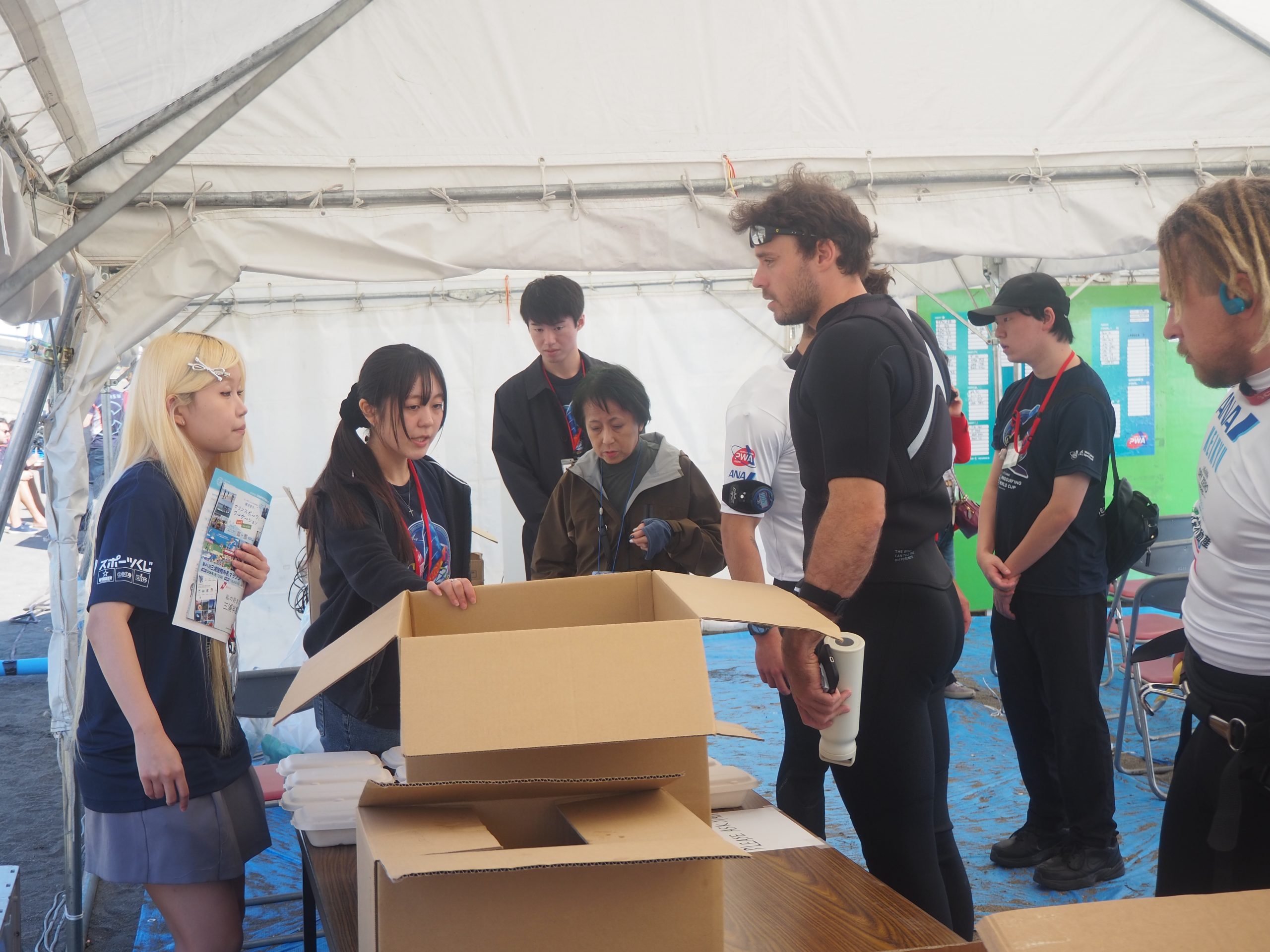 11月13日(木)~11月17日(月)にかけて開催された「ANAウインドサーフィンワールドカップ横須賀・三浦大会」において、国際文化学部の学生が大会に関する展示ブースの出展と会場運営のボランティアに参加しました。この大会は、ウインドサーフィン競技のトップ選手が集う世界最高峰の大会であり、津久井浜海岸を舞台に毎年多くの観客を魅了しています。同大会は、全日本空輸株式会社(ANA)、京浜急行電鉄株式会社、神奈川県、横須賀市、三浦市が主催し、横須賀市及び株式会社京急アドエンタープライズより大会運営に関する協力依頼を受け、実現に至りました。