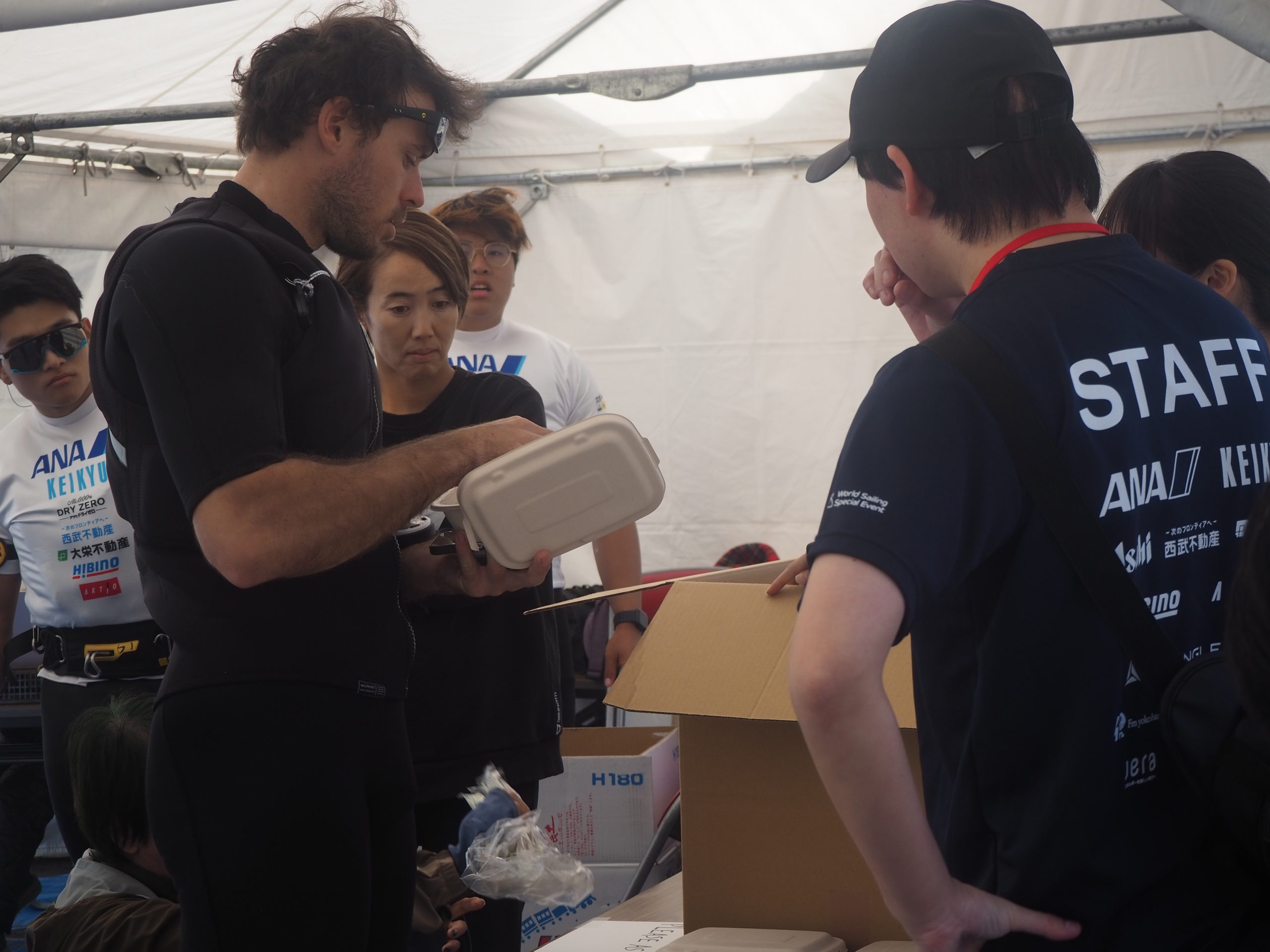 また、学生たちは選手や大会関係者の通訳サポートとしても参加。現場では多くの来場者や国際的な選手と交流する場面もあり、地域との協働や英語によるコミュニケーションの楽しさを体感する場となりました。昼食の説明や配布を担当した英語文化学科1年生の丸崎陽菜乃さんと前田詩さんは、「大学の外で、実際に学んだ英語を使って海外の選手と話すのはすごく緊張した」と感想を口にしました。2人は英語でのリアルなコミュニケーションが出来ると聞いてこのボランティアに参加。「今後もこういったイベントがあれば是非参加したい」と今回の体験を振り返ってくれました。
