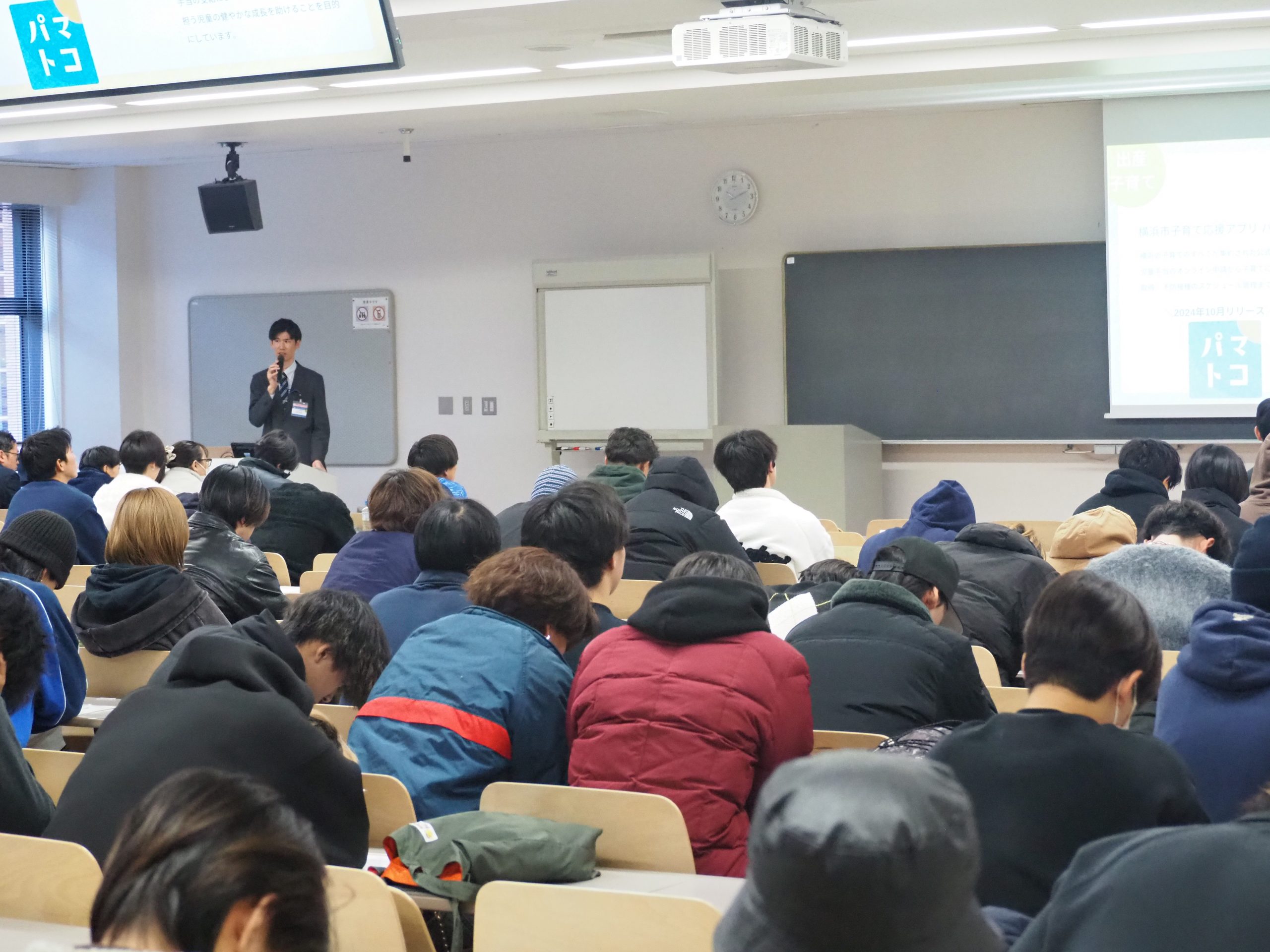 本講演は、学生が早い段階から自分の価値観を軸に人生を考え、変化の多い社会を主体的に生きるための重要な学びの場となりました。また、参加した金沢区の職員からは、結婚・出産・子育て・介護といったライフイベントに寄り添う横浜市や金沢区の支援制度について紹介があり、人生設計を社会全体で支える視点について解説。学生たちが、自身の将来と地域社会との関わりもイメージする機会となりました。