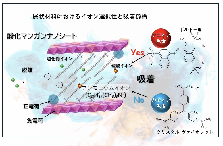この成果は、化学的にはイオン選択性をもちえない層状吸着剤において、これまで十分に理解されてこなかったイオン選択的吸着の仕組みに新たな知見をもたらすものです。特定の有害物質を効率よく除去できる吸着材料として、今後の水処理技術や環境浄化技術の高度化への貢献が期待されます。