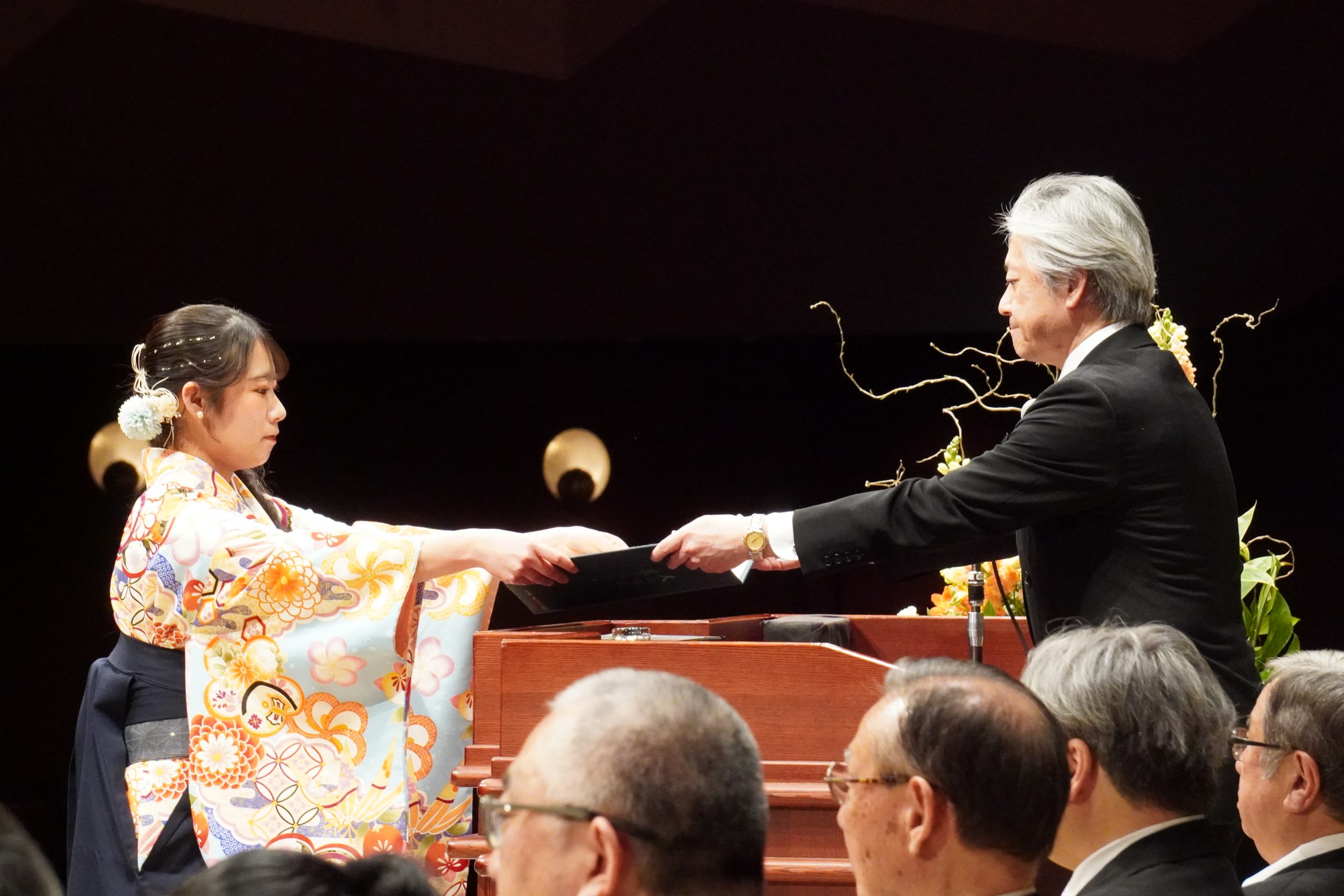 また、この晴れの日を心待ちにしてこられたご家族、関係者の皆様にも、心からお祝いを申し上げます。そして、本学に対するこれまでの厚いご支援に対し、御礼申し上げます。