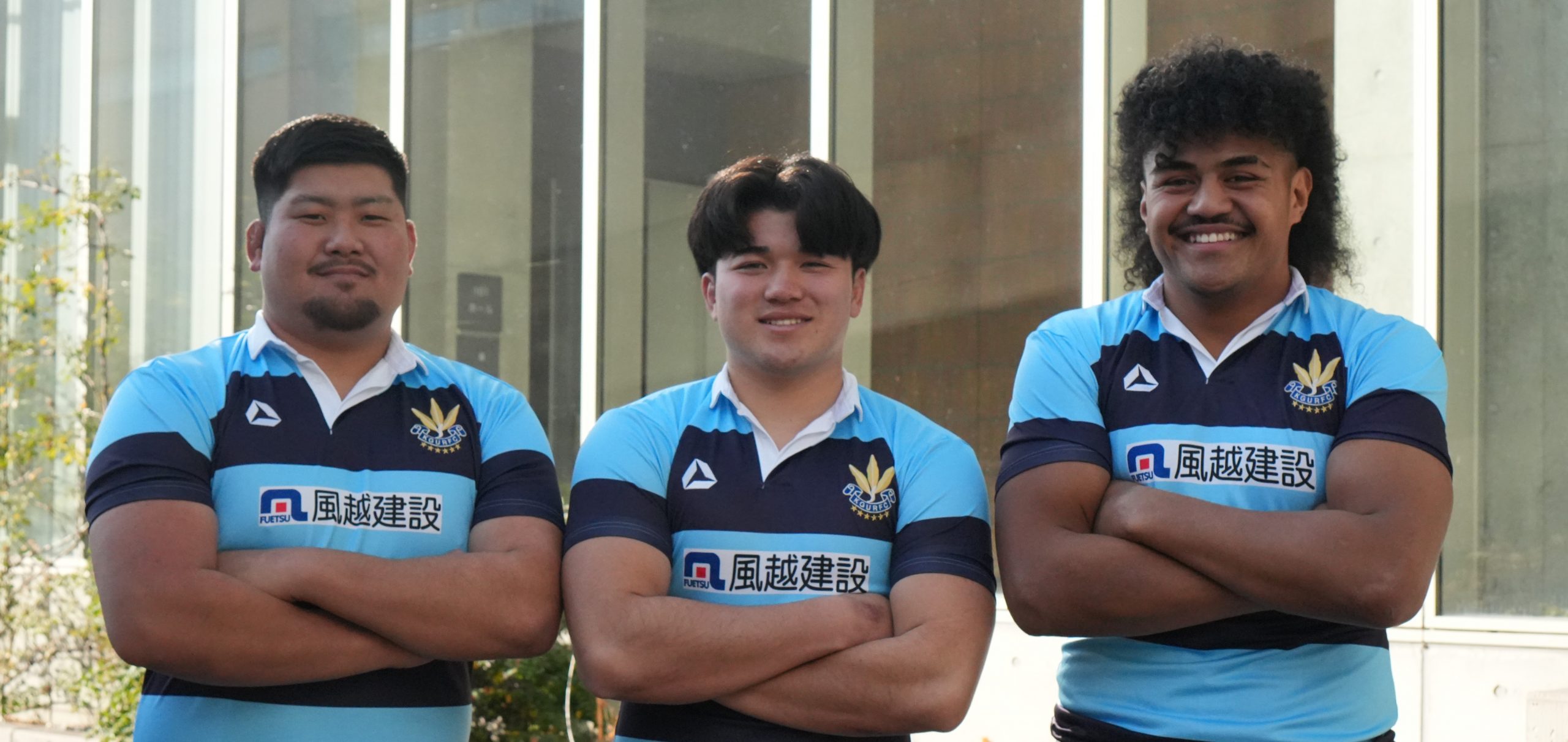 ラリー選手は浦安D-Rocks、安藤選手は日野レッドドルフィンズ、髙田選手は埼玉パナソニックワイルドナイツへ加入し、それぞれのポジションで実力をさらに磨いていきます。各チーム、本学OB選手も在籍する中で日々練習に励んでいきます。